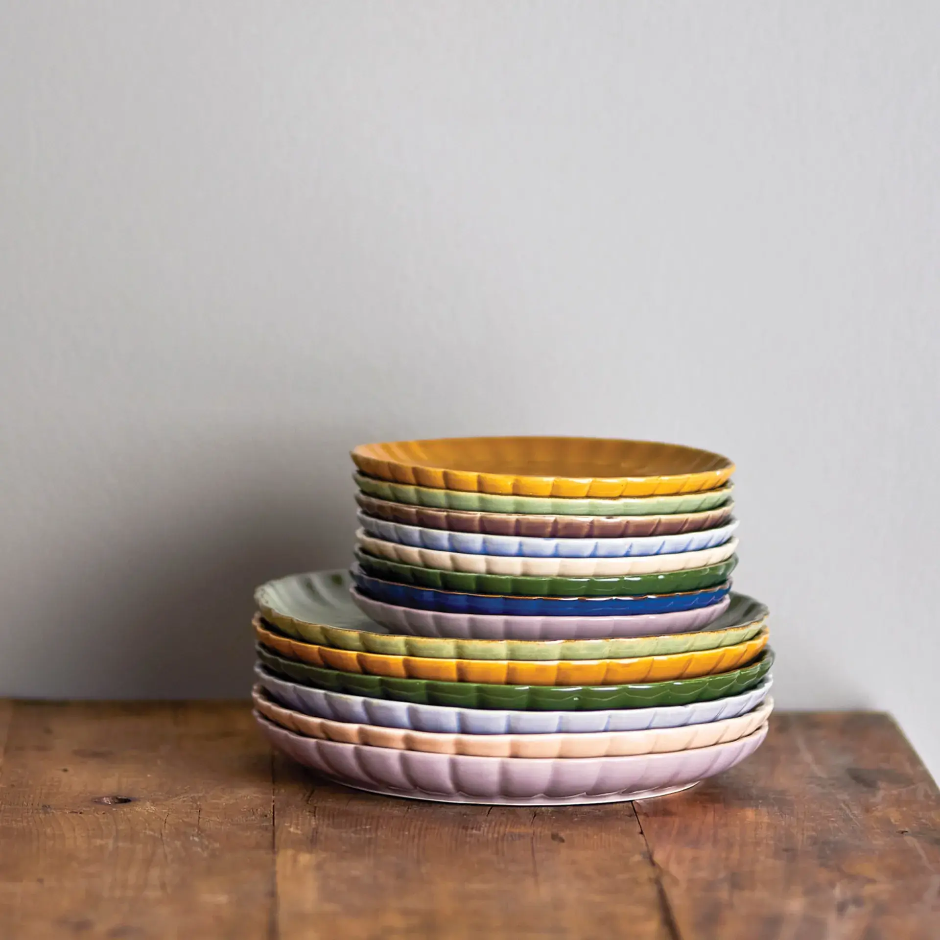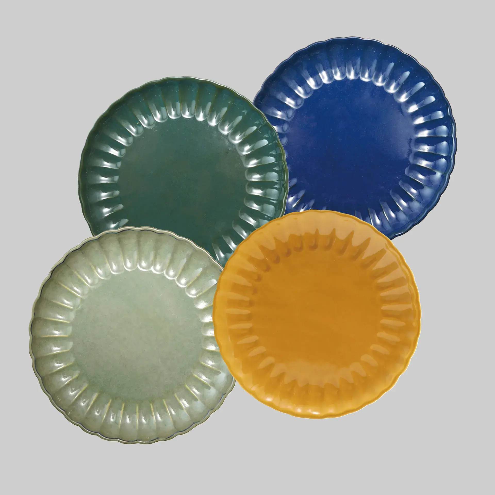 Placa estriada de gres redondo, esmalte reactivo, azul (cada una variará)