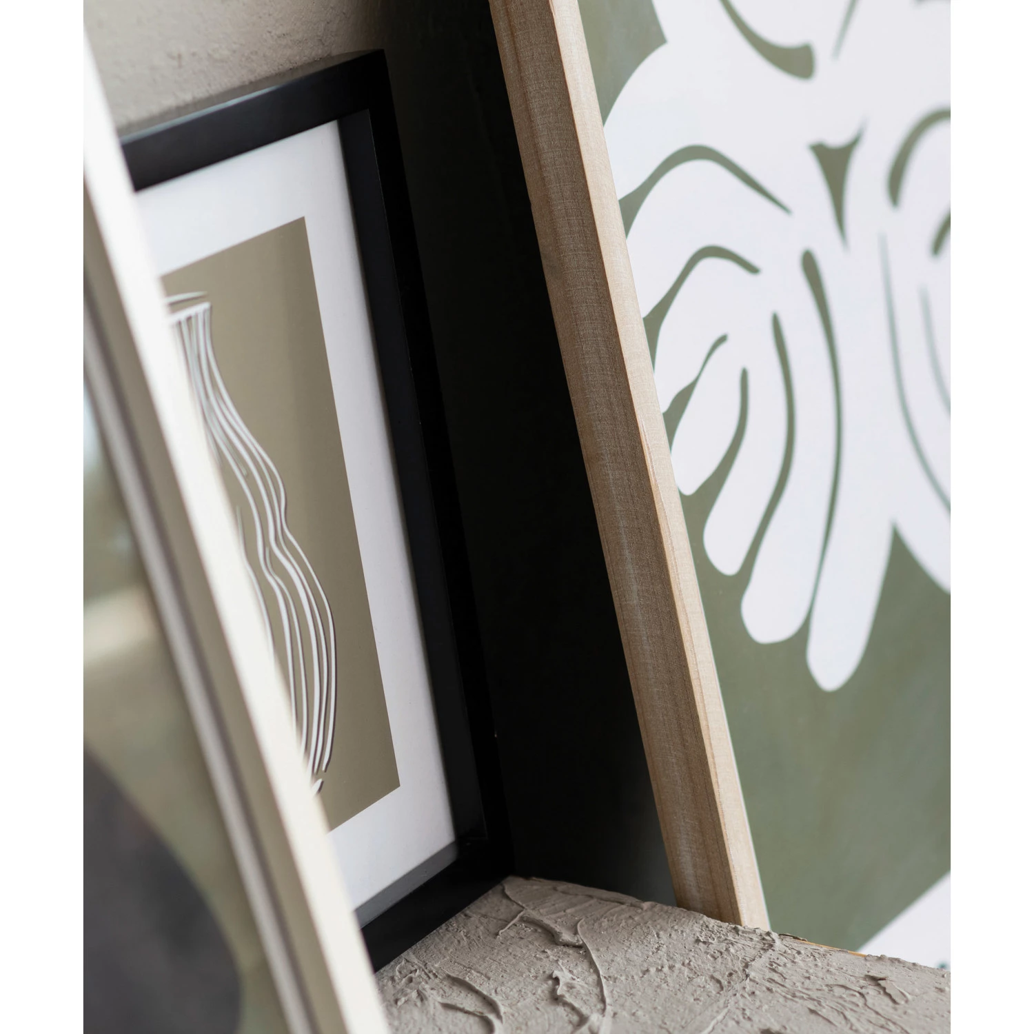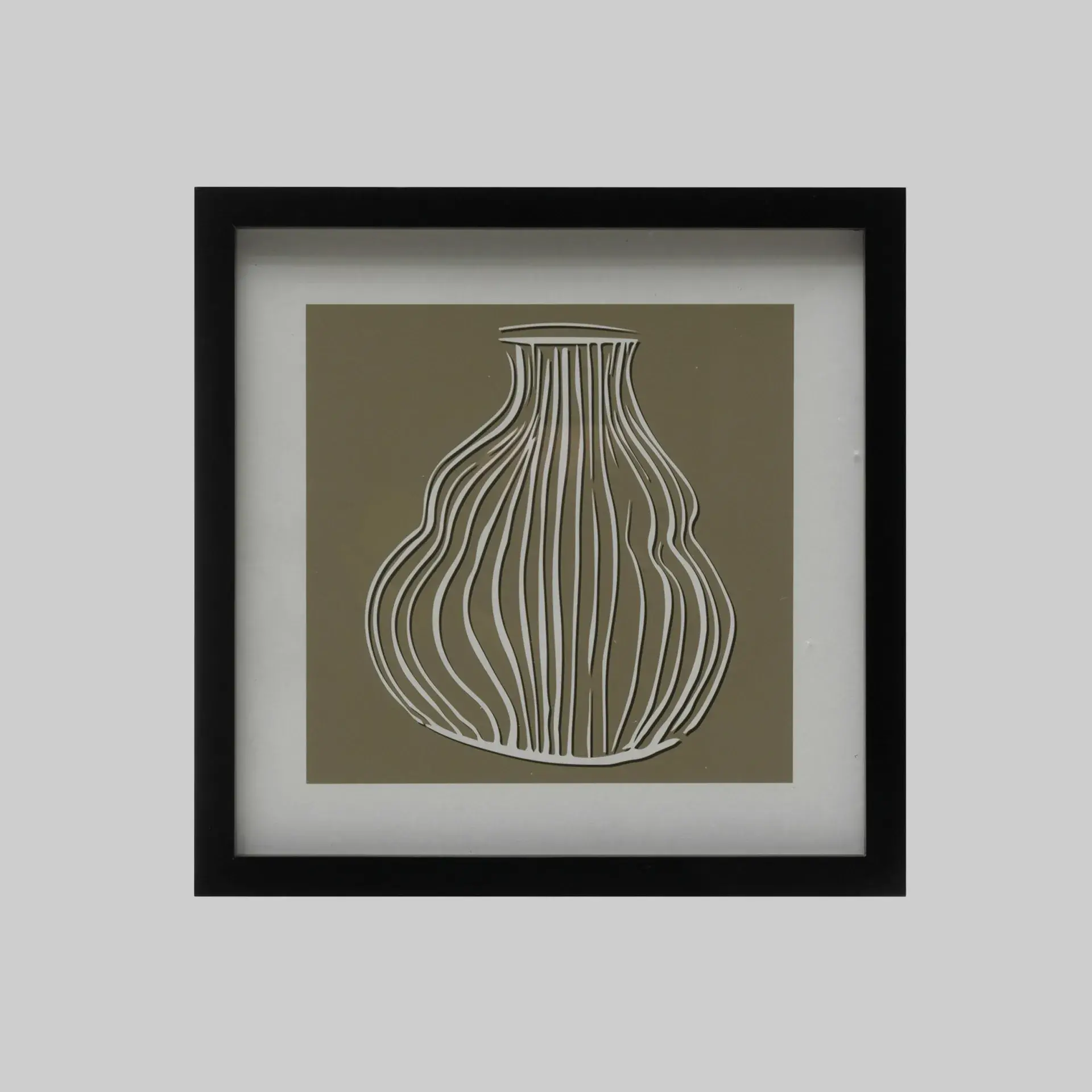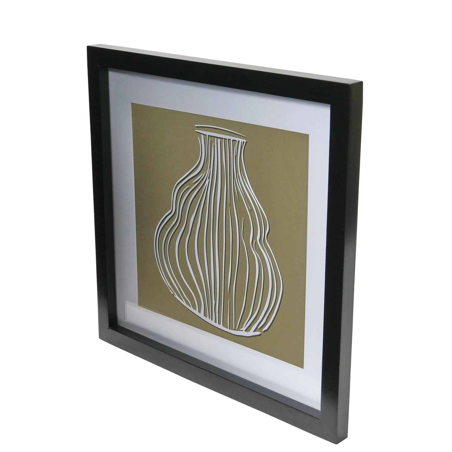 Decoración de pared de vidrio con marco de madera cuadrado y jarrón, beige y blanco. Material: Firwood Medidas: 30cm x 20cm COD: AH2592