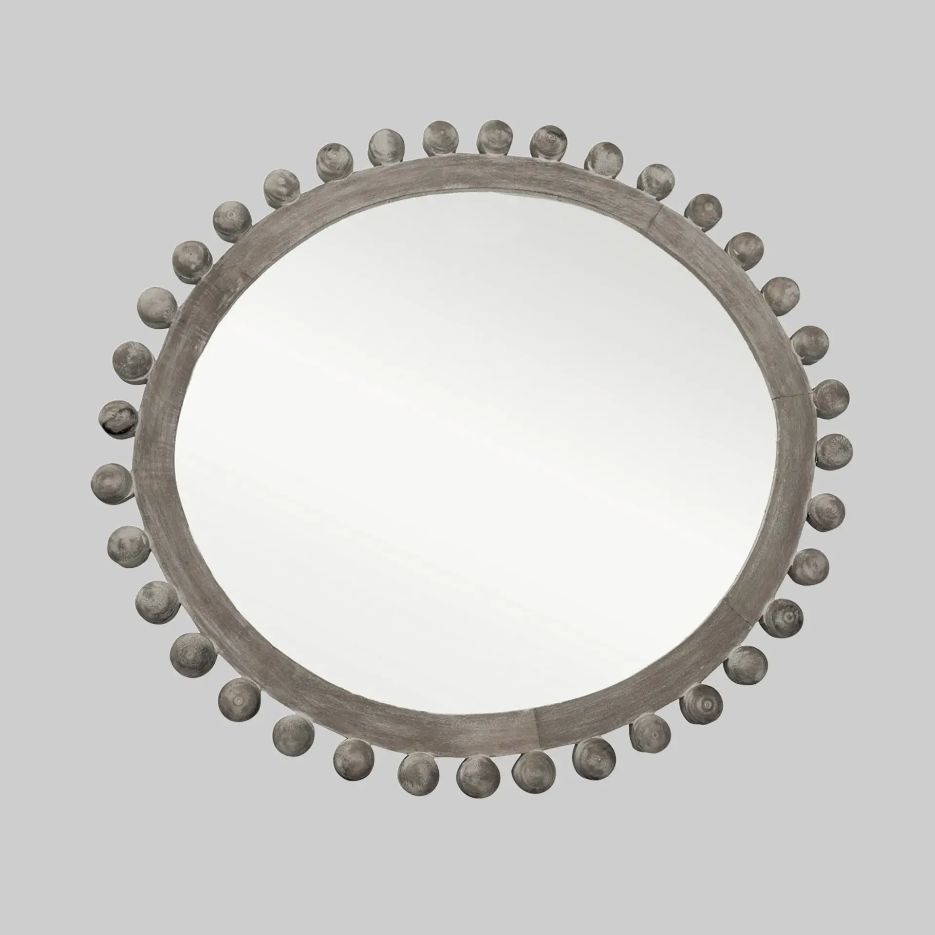Espejo de pared redondo de madera de mango  con marco de bola, acabado en negro.